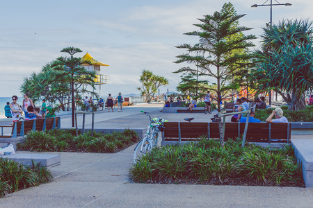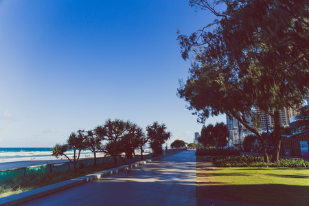 GOLD COAST, AUSTRALIA - January 6th, 2015: beach and greenery view from Surfers Paradise main seaside walk
