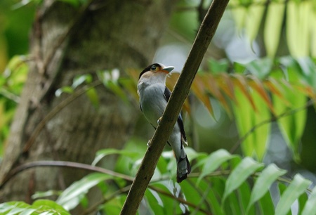 Silver-breasted Broadbill on tree branch (Serilophus lunatus)