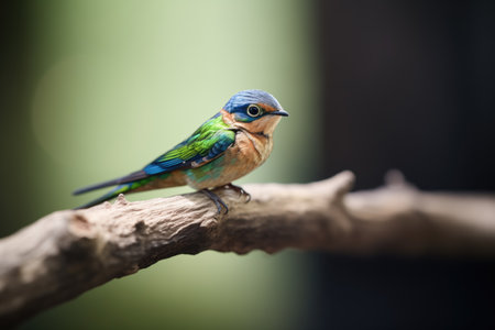 emerald swift with bright blue dewlap on a branch