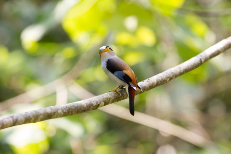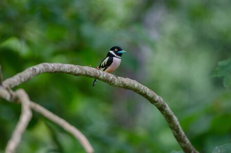 colorful bird Silver-breasted broadbill (Serilophus lunatus) on tree branch