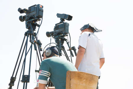 Public Live Event. Television cameras at a press conference outdoors