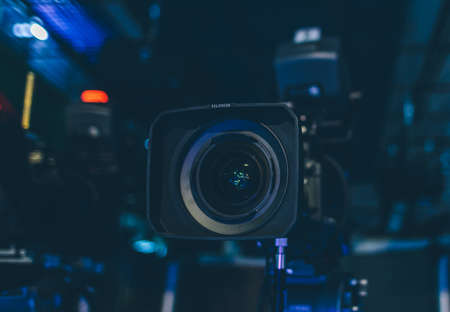 record television camera close-up in news studio