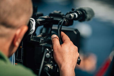 Live streaming. Camera at a press conference.