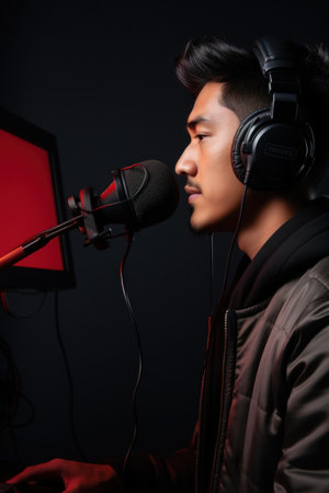 close up. professional radio host on live streaming