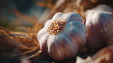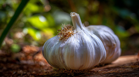 SunDrenched Garlic Bulbs with Green Tops Nature Photography