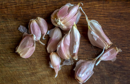 closeup garlic cloves on wooden table
