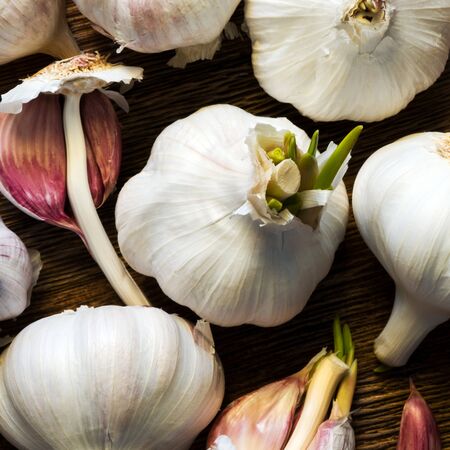 Photography of many cloves of garlic for food background