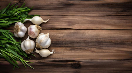 Garlic on brown wood background