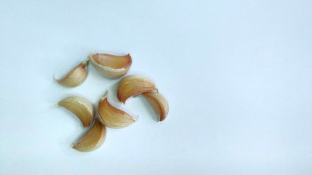 Garlic cloves on a white background. Shallow depth of field.