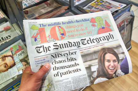 LONDON, ENGLAND - MAY 14, 2017 : The Sunday Telegraph newspaper. The Sunday Telegraph is a British broadsheet newspaper, founded in February 1961, and is published by the Telegraph Media Group