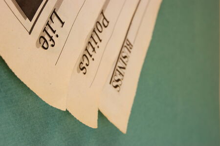 Closeup of newspapers on light background. Shallow depth of field.