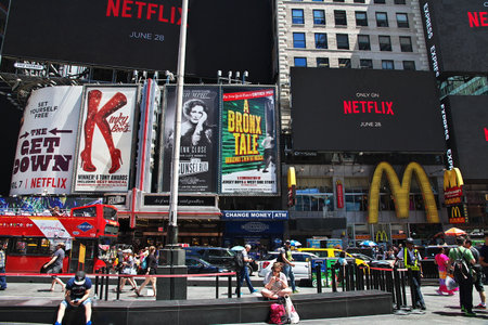 NEW YORK, USA - SEP 16, 2017: Commercial boards of the Times Square, Manhattan, New York City, United States of America