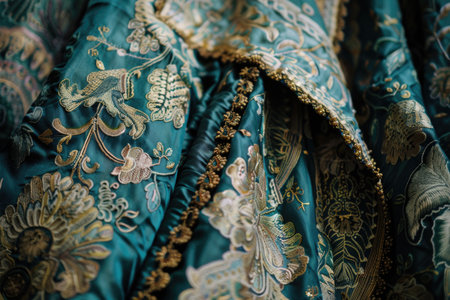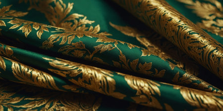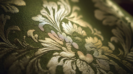 close-up of heavy brocade fabric with intricate patterns, created with generative ai