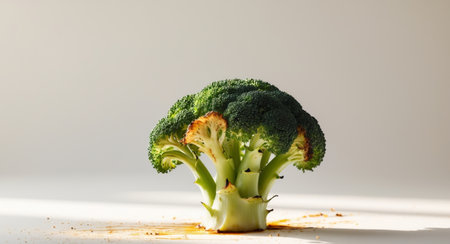 AI Generated. Roasted broccoli floret with charred edges showcasing perfect caramelization and texture
