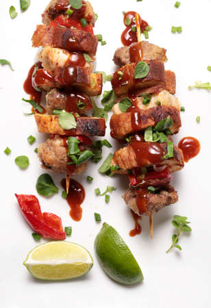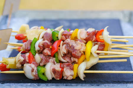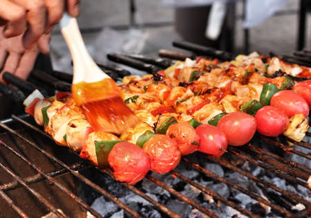 A popular barbecue with pork fillet, tomato, to taste and grill , bar-b-q on hot grill