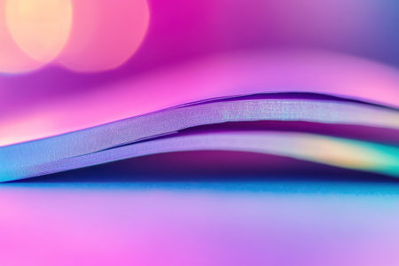 A blurry, iridescent, holographic rainbow-colored background with neon purple and blue hues. It is a close-up of the edge of an out-of-focus object. The focus should be on the edges of a piece of paper. There is plenty of space around it. --ar 3:2 --v 6.1 Job ID: 2ae9941a-8d44-495a-86b7-a7fa58356894