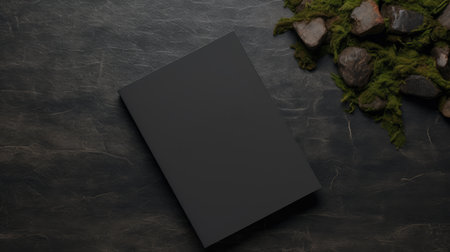 Mockup template of paper book with blank cover laying on wooden table.