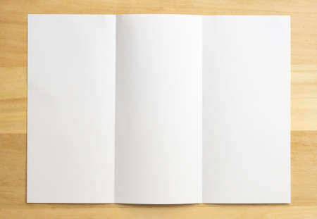 White folded paper on wood table background