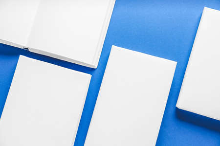 Blank books on color background