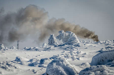 Evaporation of water from forests in northern Bohemia. Flowing fog at the top of Ještěd. Temperature change. Strong winds cause water and mist to form. lungs of the Czech healthy air. Liberec forest