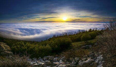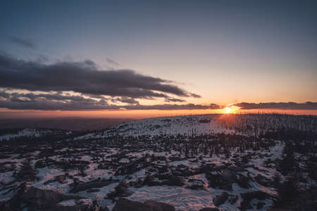 Beautiful sunset on Plechy (Sumava), cloudy sky. Czech republic