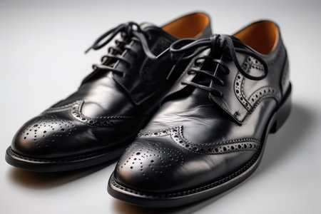 New elegant leather shoes, shiny black pair for modern men generated by artificial intelligence