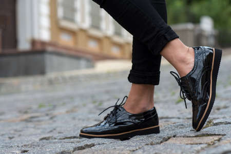 Close up of stylish female shoes. Footwear advertising.