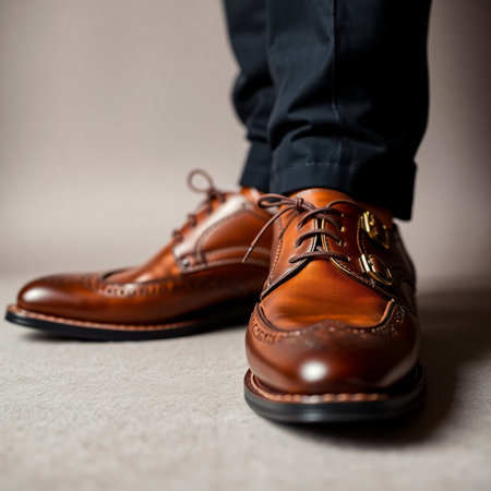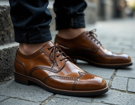 Close medium shot of stylish footwear focusing on craftsmanship tailored for highimpact advertising visuals.