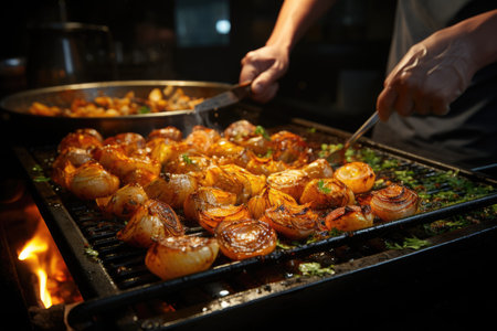 Culinary Person grilling succulent onions for barbecue., generative AI