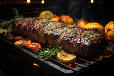 Perfectly grilled meat food composition showing its juicy and delectable texture.
