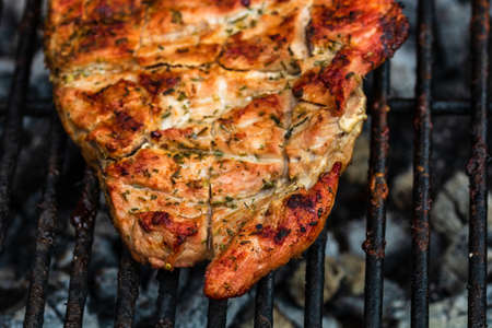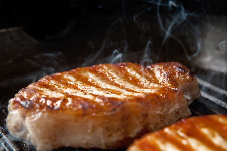Grilled pork on the grill