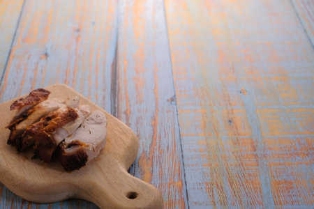Close up of delicious roasted meat in a restaurant. Selective focus.