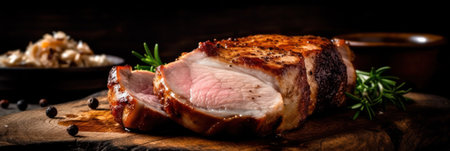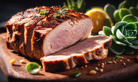 Closeup of a deliciously slow cooked juicy pork sirloin steak