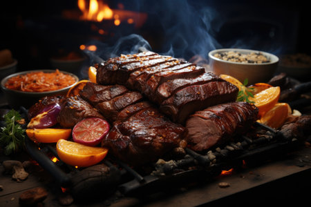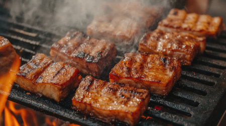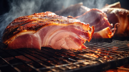 BBQ grilled pork on smoke