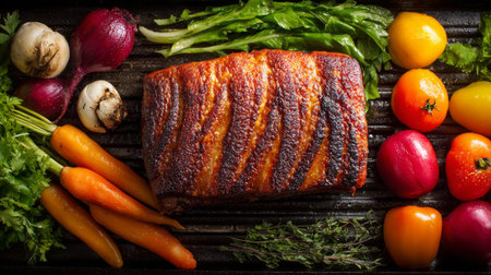 The crispy pork belly flat lay image for food content.