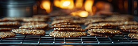 Freshly baked buckwheat crackers cooling on a wire rack emitting a warm and inviting aroma