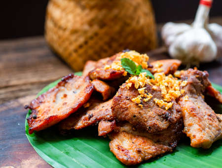 Thai food homemade pork and fresh milk and ingredient the will fried should be eat with Sticky Rice is very yummy.