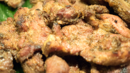 Many piece of fried pork in close up shot.