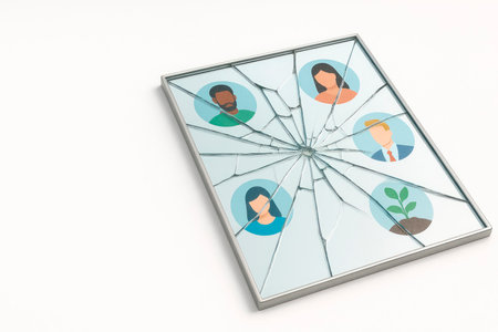 Detailed view of an eye seen through shattered glass, conveying a sense of fragility and vulnerability