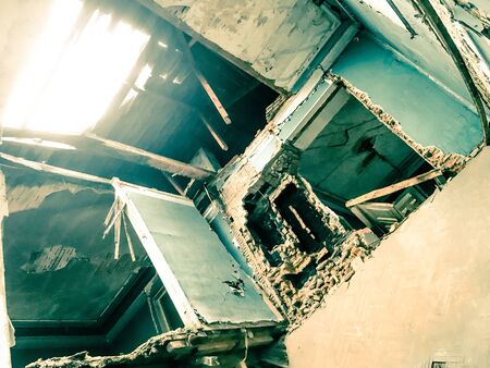 Wiring inside a collapsed building. Shooting Location: Nishi Ward, Yokohama City