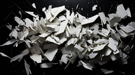 A captivating arrangement of broken black and white tiles scattered on a light surface, perfect for artistic backgrounds and creative projects in design and decoration.