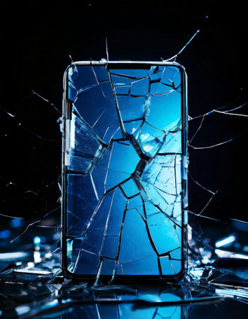 Shattered smartphone screen with blue background