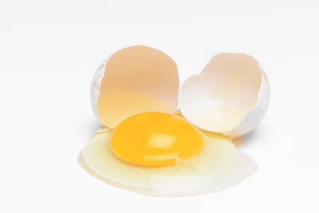 Close up of broken egg. Isolated on a white background.