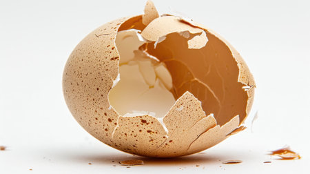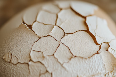 Cracked eggshell with close-up details and a natural texture. Concept of fragility and beginnings.