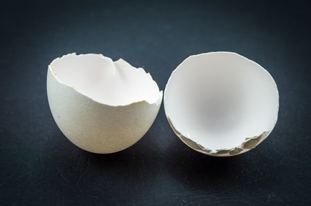 broken eggshell isolated on white background, broken egg and empty eggshell isolated on white background