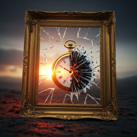 A broken glass sculpture sits on a table, casting intriguing patterns as sunlight streams through the window.