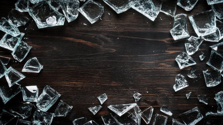 Broken glass on an old wooden floor, concept of violence