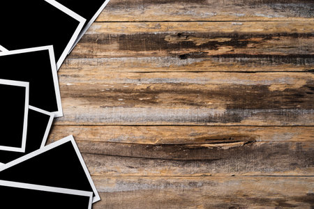 Blank photo frames for your photos on wooden background