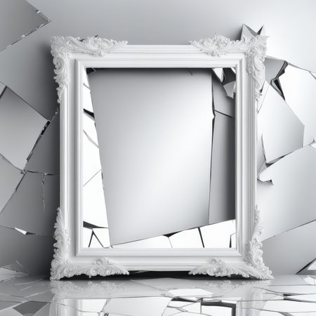 broken glass on a white background, close-up, monochrome