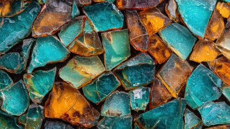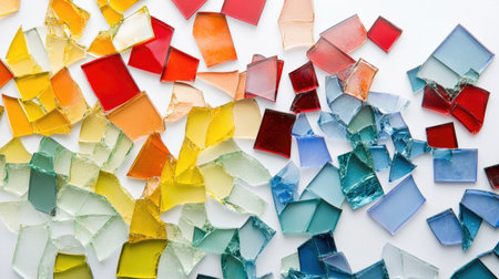 Beautiful arrangement of shattered glass fragments, showcasing vibrant colors and reflections. Ideal for abstract art themes or creative projects.